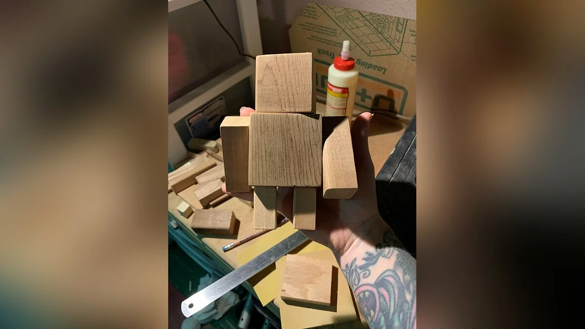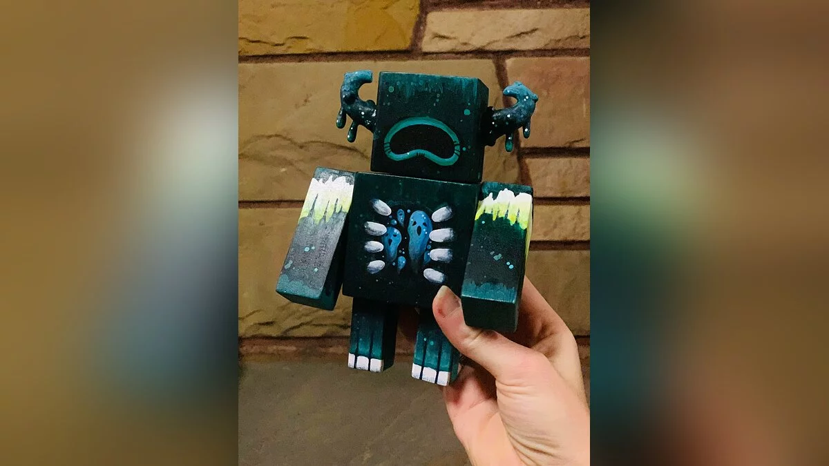 Пользователь Reddit с ником killersim воссоздал в реальности фигурку Надзирателя (Warden) из Minecraft. Для создания игрушки реддитор вырезал из дерева два кубика и четыре бруска. Затем он соединил их, приделал рога и покрасил. Получилось довольно интересно и очень качественно.