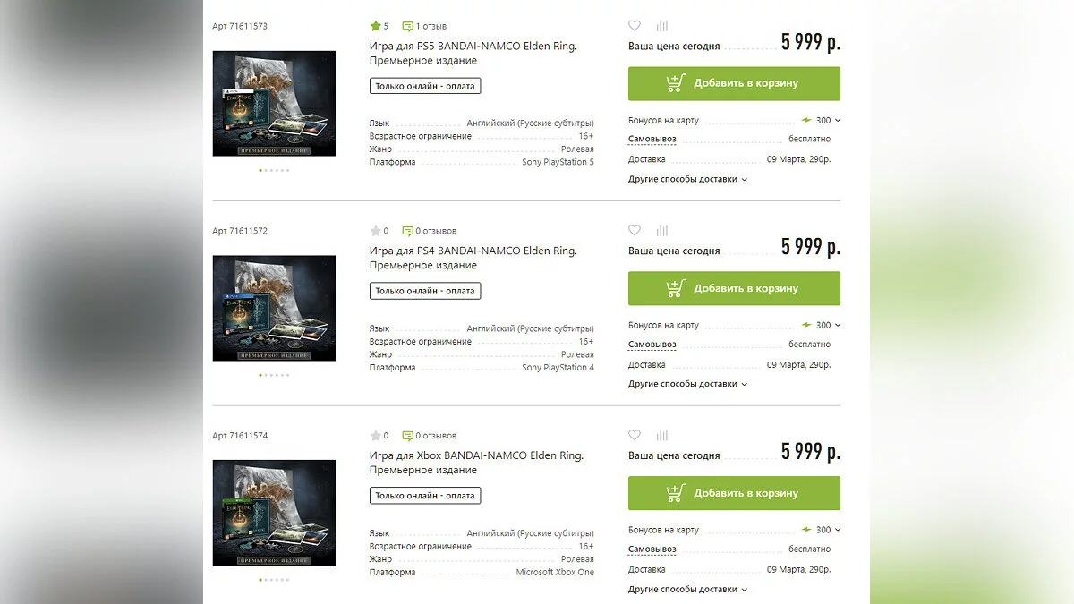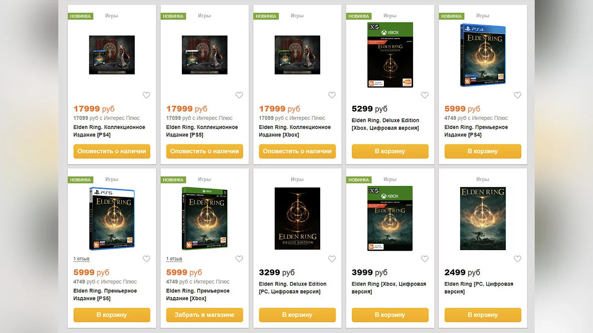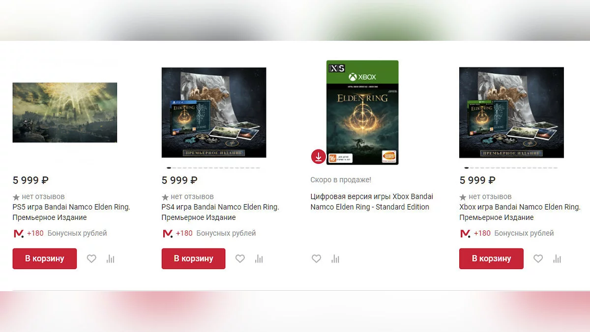 Теперь диск с обычным изданием Elden Ring стоит не 4999, а 5999 рублей. Коллекционное издание с фигуркой обойдется в 17 999 рублей. Вероятно, скоро сети обновят ценники других новинок.