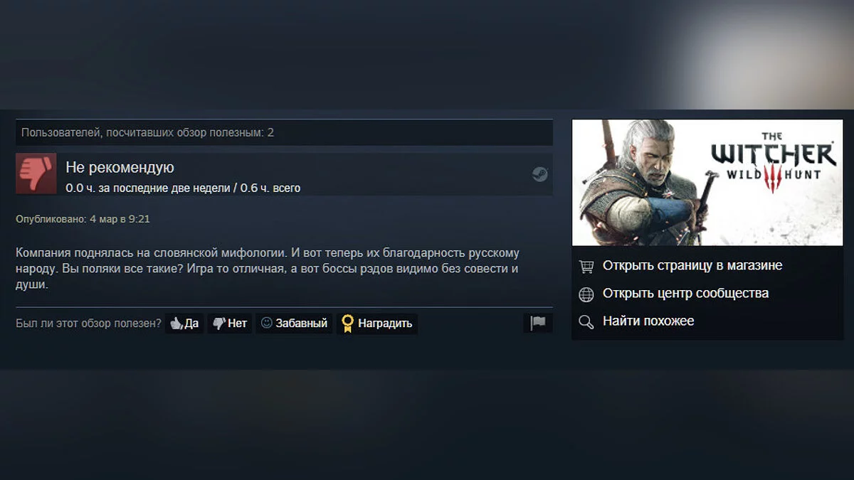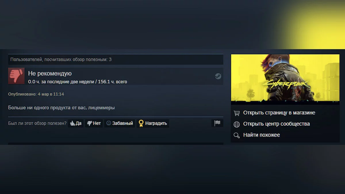«Ну и не нужно!» — Cyberpunk 2077, The Witcher 3 и другие польские игры завалили негативными оценками в Steam