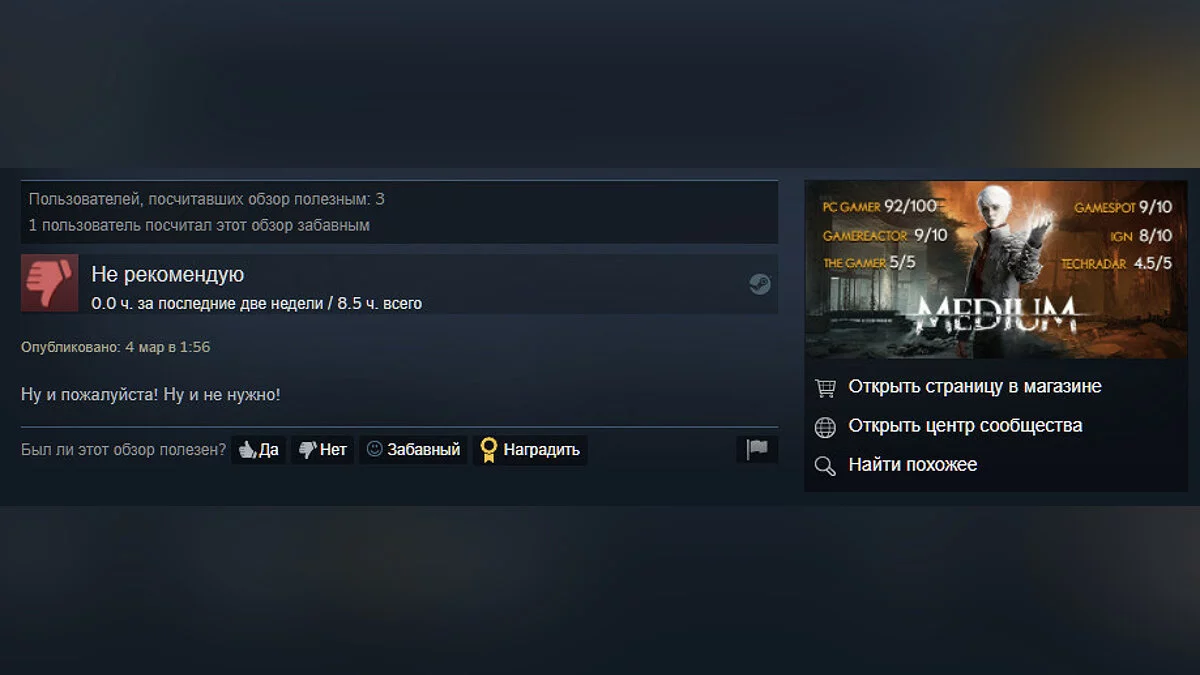 После того, как CD Projekt RED и Bloober Team остановили продажи своих игр в России и Беларуси, возмущенные пользователи устроили ревью-бомбинг в Steam.