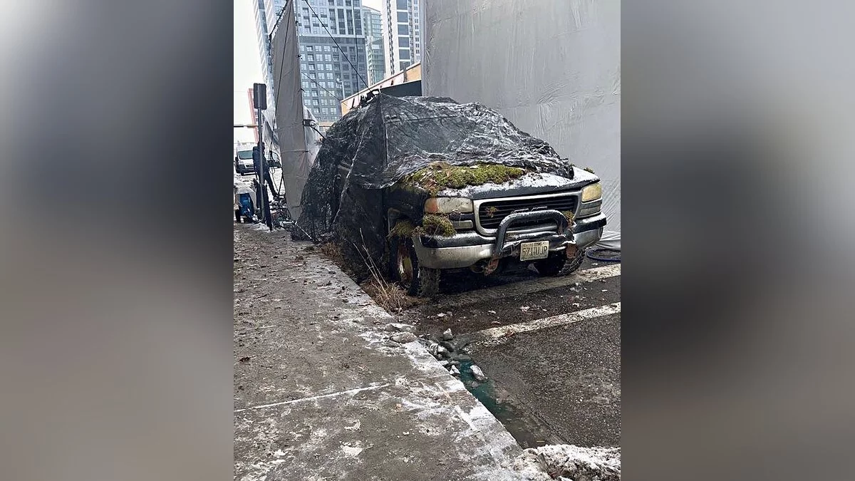 В сети появились новые фотографии с места съёмок сериала по The Last of Us. Свежие фото были сделаны в канадском городе Калгари. На изображениях можно увидеть, как снимали сцену с покрытым мхом старым автомобилем.
