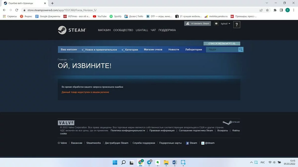 В российском магазине Steam исчезли из продажи игры от компании Microsoft. Там уже нельзя купить Forza Horizon 5, Halo Infinite и Gears of War. При этом там попросту закрыли страницы. Система выдаёт вот такое сообщение.
