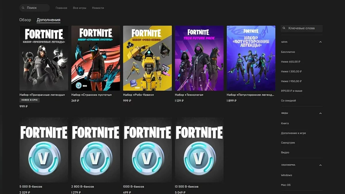 На текущий момент уже недоступна покупка внутриигровой валюты и наборов со скинами. Сама игра пока что работает для российских аккаунтов. При этом в EGS ещё можно купить наборы. А ещё можно тратить уже приобретённые V-баксы.