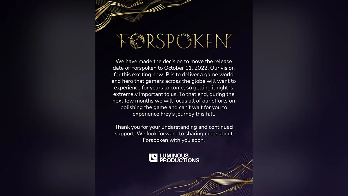 Luminous Productions не назвала конкретных причин. По словам авторов, они рассчитывают выпустить игру, которой можно будет наслаждаться годы, поэтому нужно больше времени на полировку.