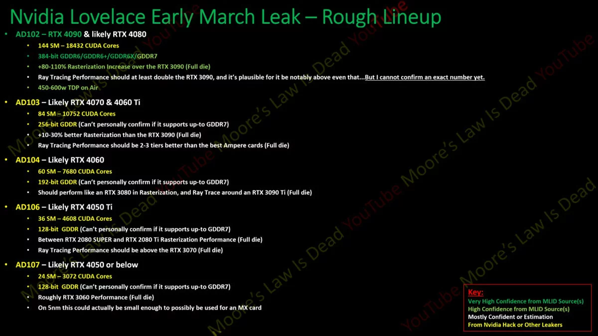 Пока неясно, идёт ли речь о чистой производительности или в режиме трассировки лучей. Зато известно, что карты получат новую память GDDR7, хотя первые ревизии могут оснащаться GDDR6X.