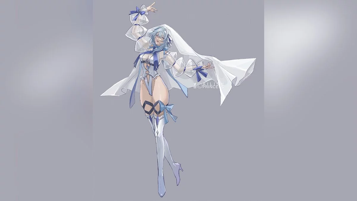 Продолжаем знакомиться с косплеем PeachMilky, очаровательной феи из Токио. На этот раз девушка перевоплотилась в Эолу, аристократки с нежно-голубыми волосами из Genshin Impact. Героине посвятили аж два разных наряда: в классическом и «свадебном» костюмах, последний нарисовала художница @princess_ailish.