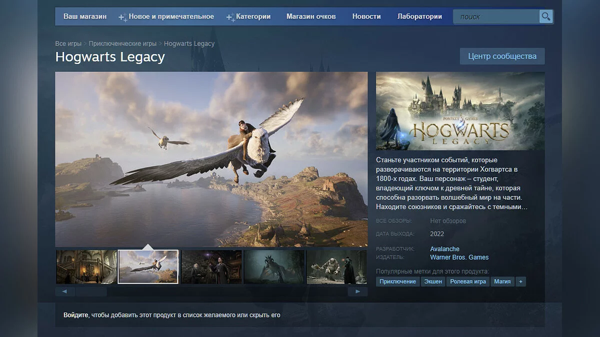 Новый тайтл во вселенной «Гарри Поттера», приключенческий экшен Hogwarts Legacy, обзавелся собственной страничкой в Steam. Сейчас на ней опубликованы только описание и несколько скриншотов.