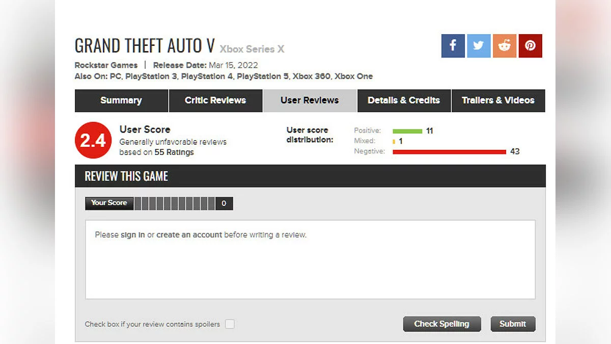 Новости Игровые новости «Нелепый развод на деньги» — игроки обвалили рейтинг некстген-версии GTA 5 на Metacritic