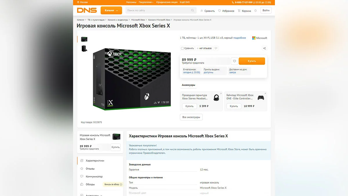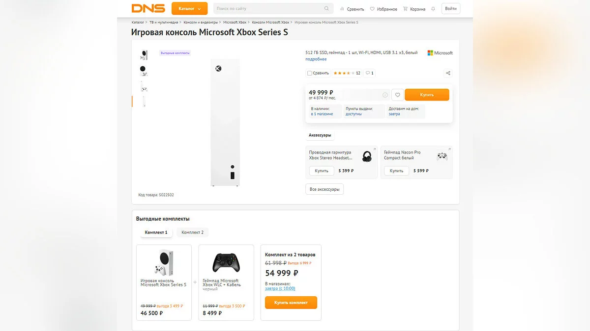 А ещё в интернет-магазине OZON можно приобрести Xbox Series S в комплекте с проводной гарнитурой Xbox Stereo Headset. Этот комплект стоит 44 990 рублей.