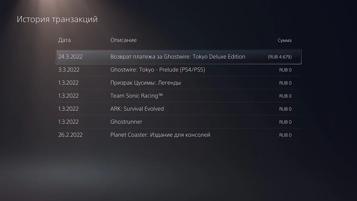 При этом интересно, что кошельком PSN фактически нельзя воспользоваться — ни вернуть деньги на карту, ни купить что-то другое. Отметим, что Ghostwire: Tokyo можно было купить в PS Store со скидкой за 3599 рублей. Но сейчас магазин не работает на территории России.