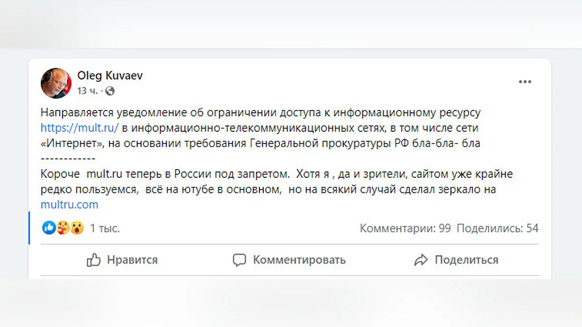 В России блокируют сайт с эпизодами мультсериала «Масяня». Об этом сообщил режиссёр Олег Куваев. Как отмечается, он получил уведомление от Роскомнадзора, что сайт mult.ru блокируется на основании решения Генпрокуратуры РФ.
