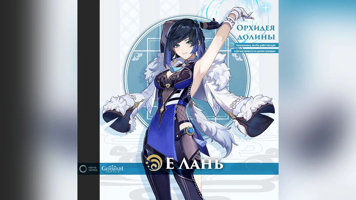 Е Лань — 5-звёздочная лучница стихии Гидро (вода). Авторы описывают её как «незнакомку, якобы работающую в Департаменте по делам граждан».