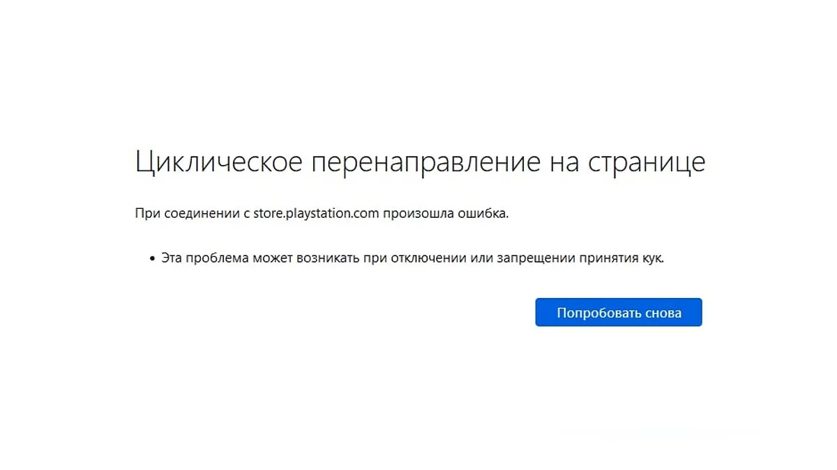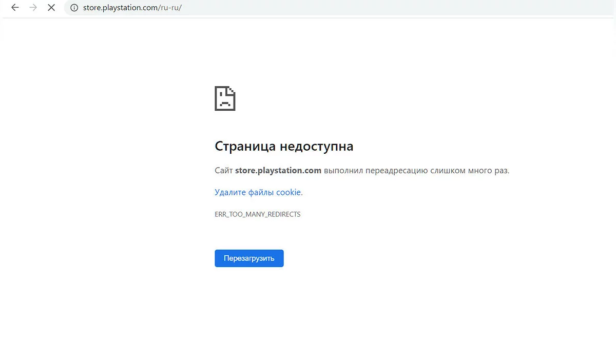 Российская версия магазина PS Store перестала открываться из браузеров. При попытке зайти выдаётся сообщение «ERR_TOO_MANY_REDIRECTS», обычно она связана с неверной конфигурацией сайта или сторонних сервисов.