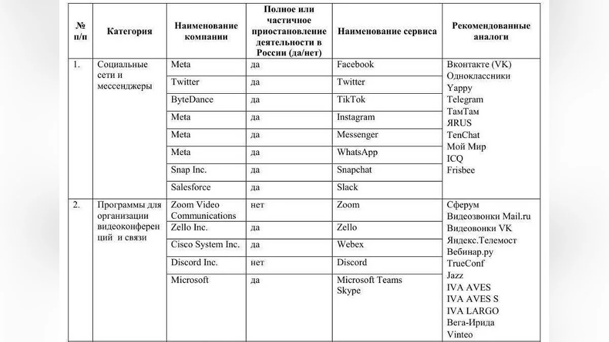 В российском Минцифры составили список социальных сетей, мессенджеров, сервисов и программ, которые могут заменить западные аналоги.