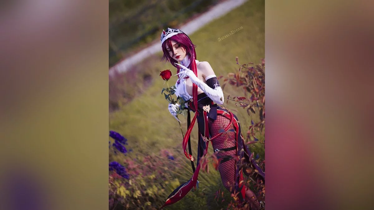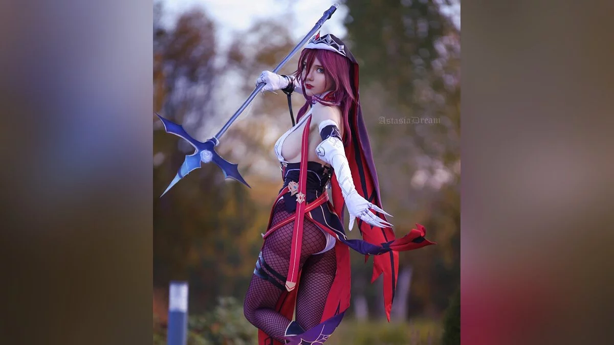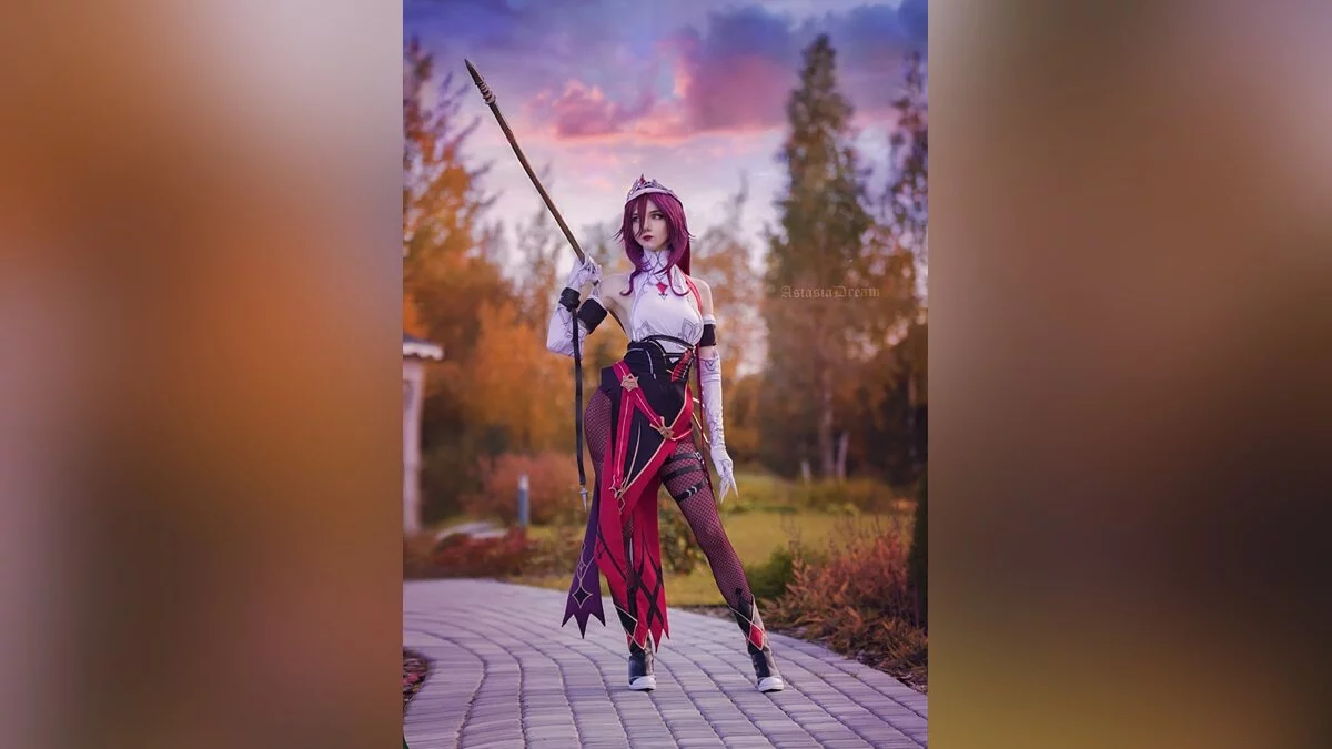 Персонажи Genshin Impact пользуются огромной популярностью среди косплееров. На днях модель Astasia Dream из Таллина перевоплотилась в Розарию, сестру церкви Фавония из Мондштадта. Для косплея она надела белую блузку с перчатками и бордовую юбку с колготками, а в руки взяла копьё.