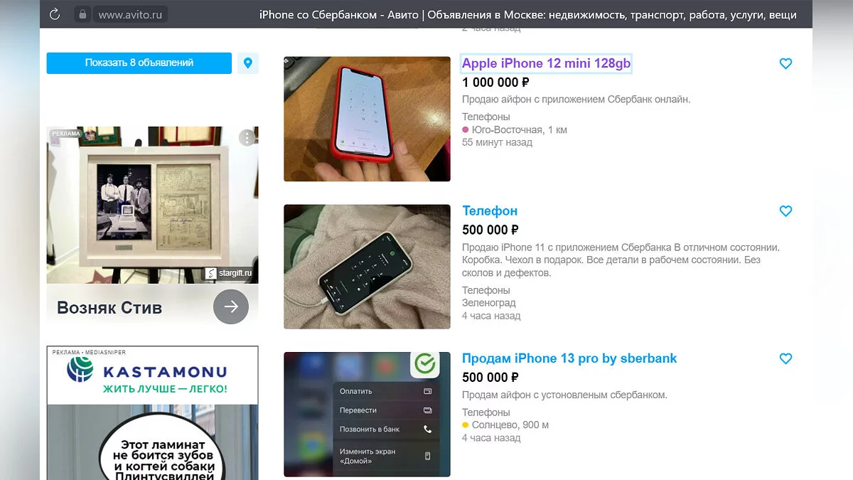 На «Авито» продают iPhone с установленным «СберБанком Онлайн». Цена — до миллиона рублей