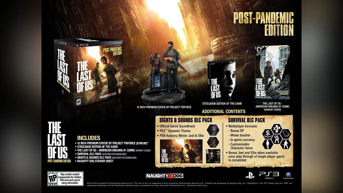 В свою очередь Post-Pandemic Edition получит другое дополнение (Survival вместо Sights & Sound), а вместо артбука покупатели получат 12-дюймовую статуэтку изображающую Джоэля и Элли.