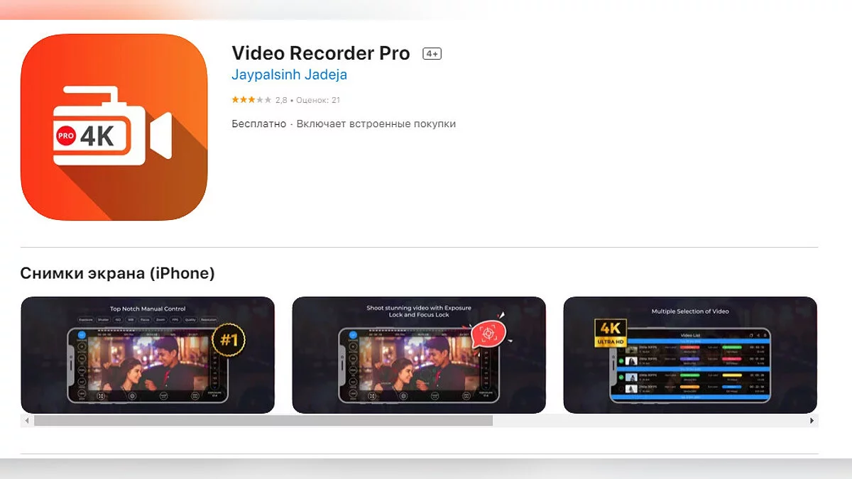 - Video Recorder Pro — программа для записи видео (загрузить бесплатно).