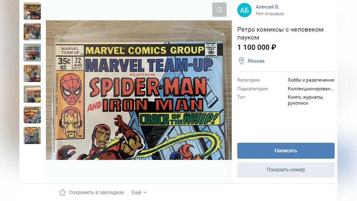 В VK продают оригинальные комиксы про Человека-паука и Халка за 1,1 миллиона рублей