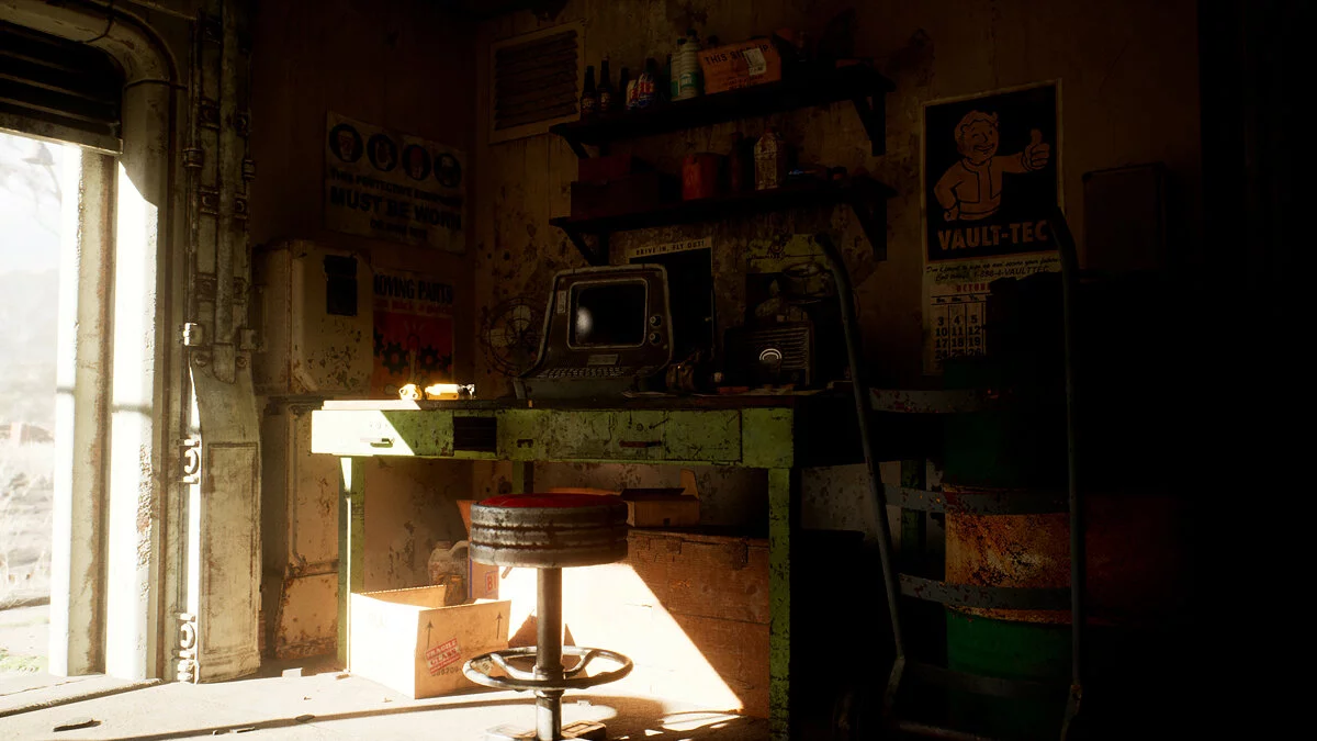 Художник Эндрю Геберт (Andrew Gebert), работавший над Call of Duty: Vanguard, поделился новыми изображениями воссозданной на UE5 заправочной станцию «Красная ракета» из Fallout 4. На этот раз разработчик показал её изнутри.