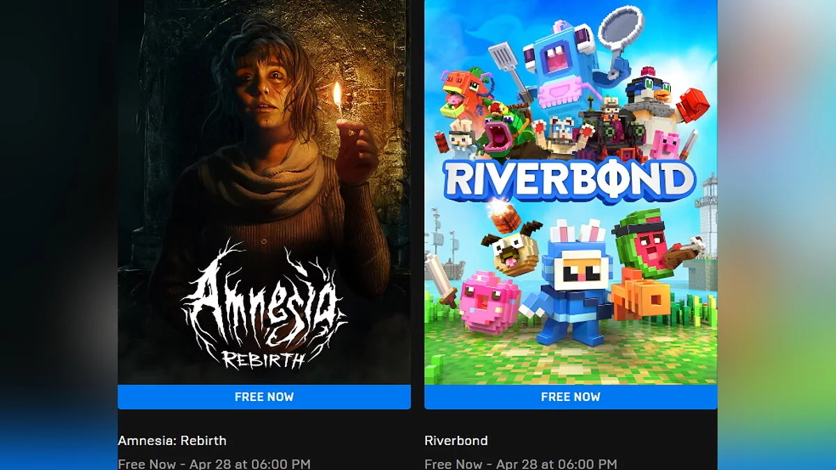 психологический хоррор Amnesia: Rebirth и яркое воксельное приключение Riverbond. Общая стоимость двух проектов составляет 964 рубля.
