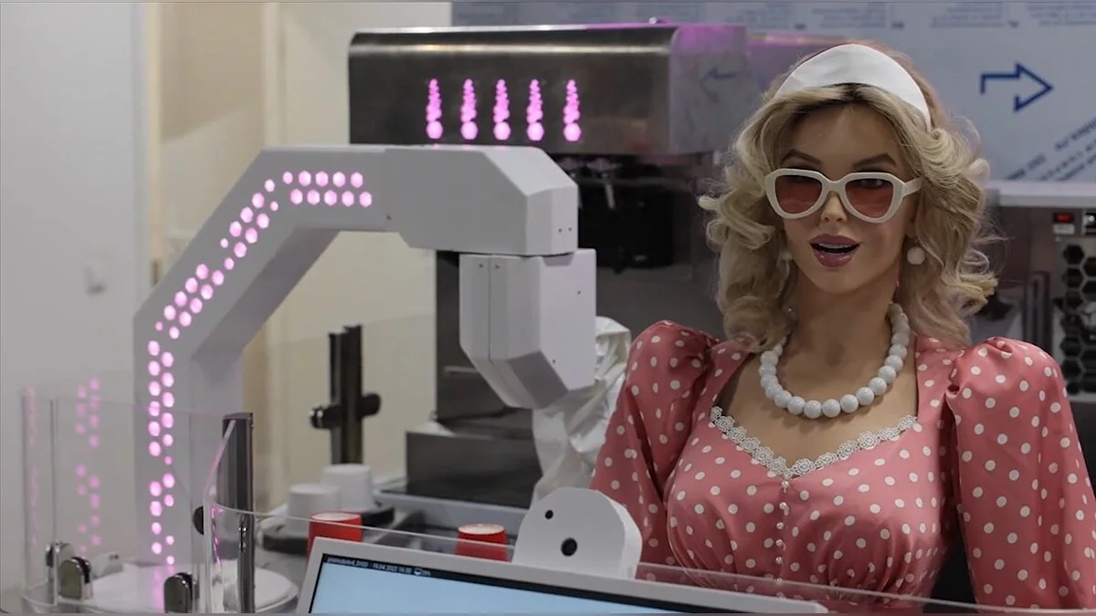 Само кафе представляет собой роботизированный комплекс с прилавком, лотками с мороженым, машиной для розлива газировки и кофемашиной. При этом робот будет обеспечивать как приём заказа, так и его выдачу.