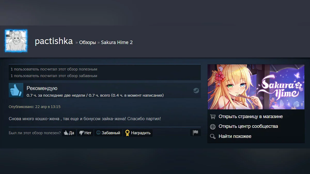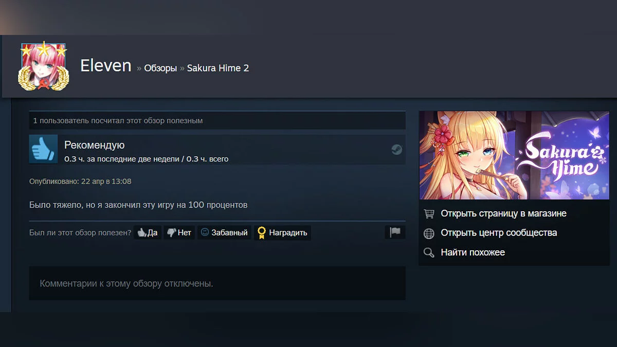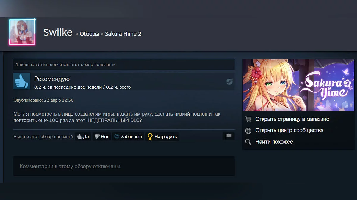 В Steam вышла эротическая игра с анимешной графикой Sakura Hime 2, которая буквально в первый же день получила очень положительные отзывы от геймеров. На момент написания новости ее рейтинг составляет 97%.
