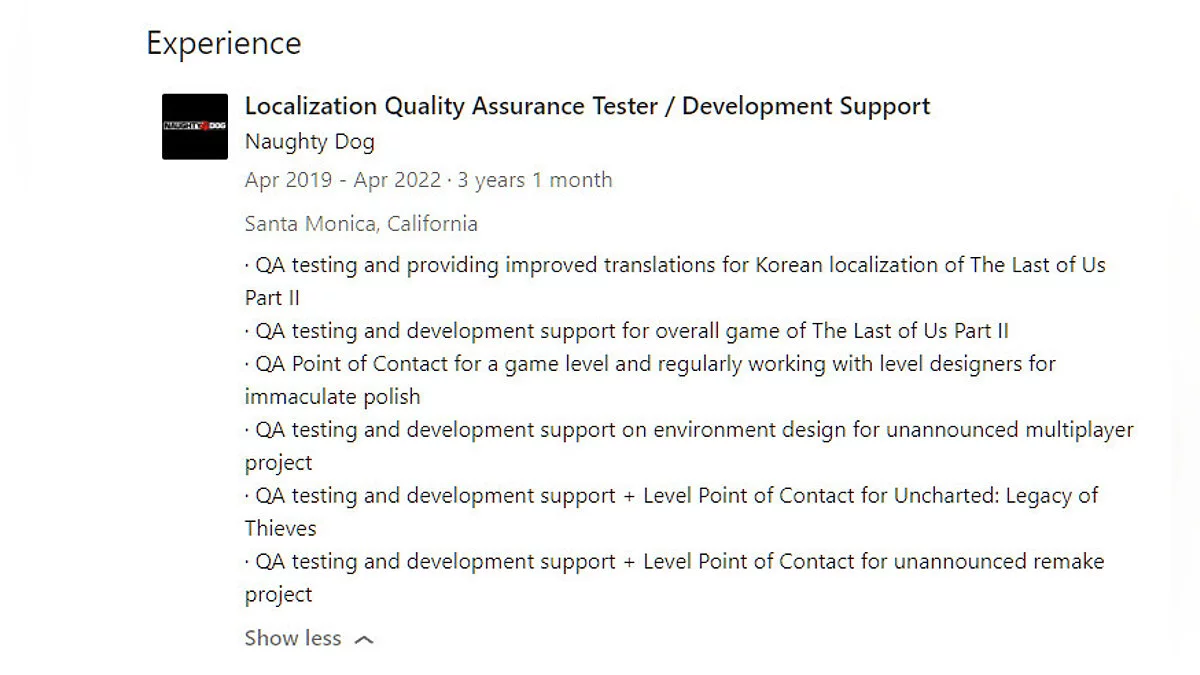 В сети появляется все больше намеков на существование ремейка The Last of Us. На этот раз информацию нашли в профиле тестера Кори Хонга (Corey Hong), работающего по контракту с Naughty Dog.