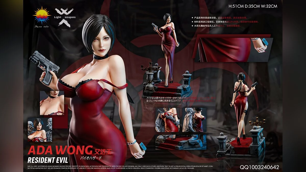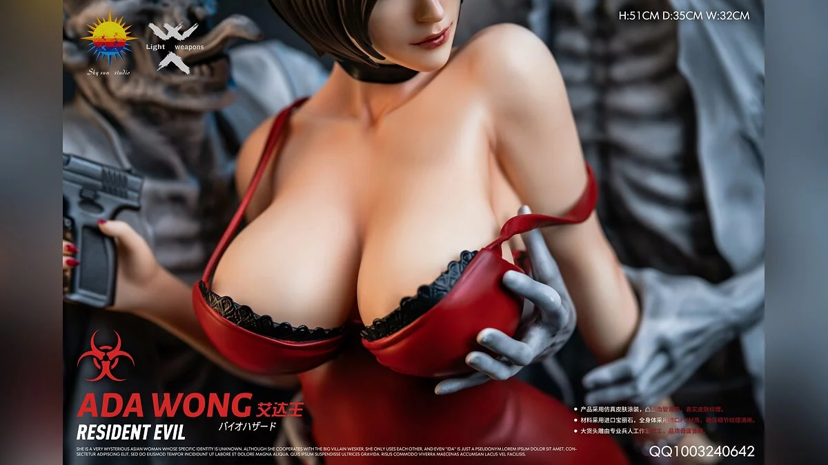 Sky Sun Studio показала новую высококачественную фигурку Ады Вонг с реалистичным телом из Resident Evil 4, одетую в откровенное красное платье.