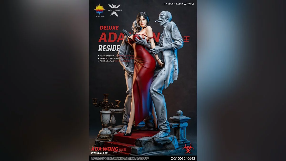 Высота фигурки составит 51 сантиметр. Изготовят её в двух версиях. В стандартную войдёт только Ада, в более дорогую — ещё и два зомби. Чтобы раздеть фигурку, придётся докупить сменное обнажённое тело. Тираж будет ограничен — выпустят менее 200 штук. Выход состоится в начале 2023 года.