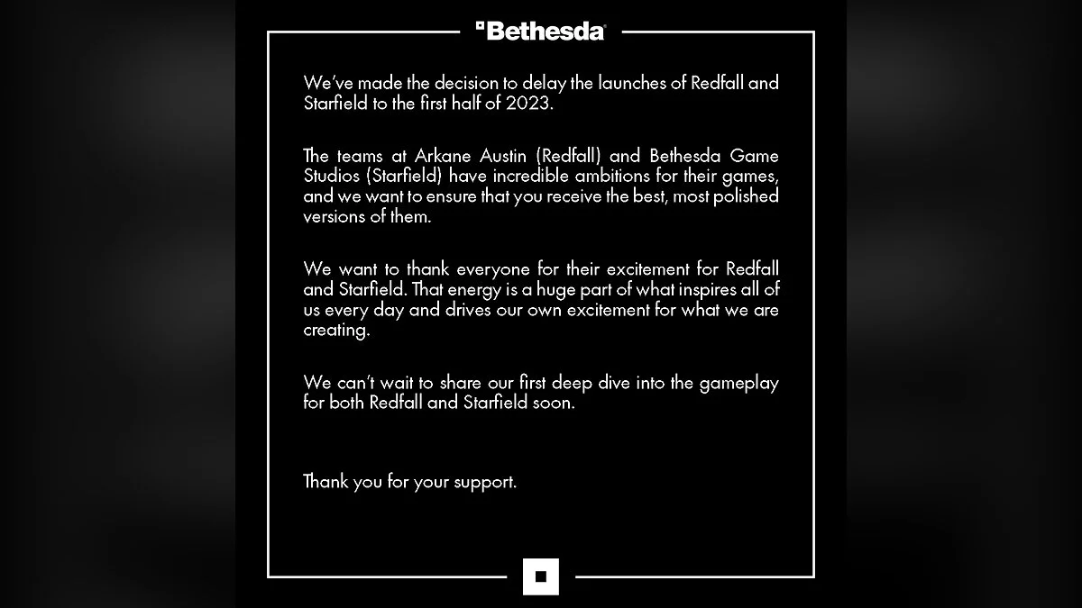 Плохие новости от Bethesda: компания объявила о переносе Starfield и Redfall. Игры выйдут в первой половине 2023 года.