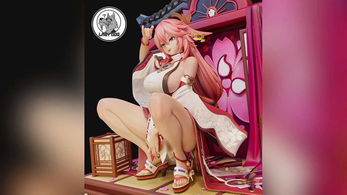 Яэ Мико из Genshin Impact оказалась довольно популярной среди китайских производителей фигурок. На днях анонсировали ещё одну статуэтку розововолосой жрицы с лисьими ушками в довольно откровенной позе.