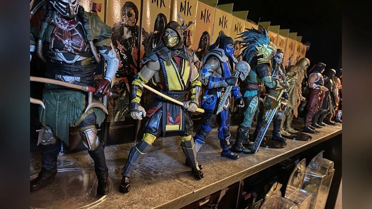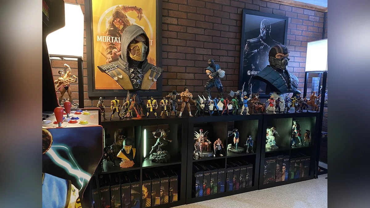 В частности, на снимке можно увидеть множество коллекционных фигурок, статуэтки, бюсты Саб-Зиро и Скорпиона, постеры, оригинальный аркадный автомат и другие интересные вещи.