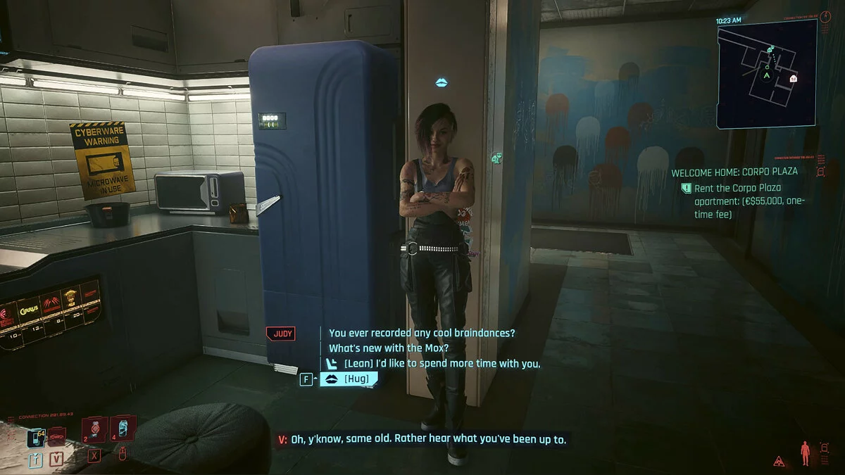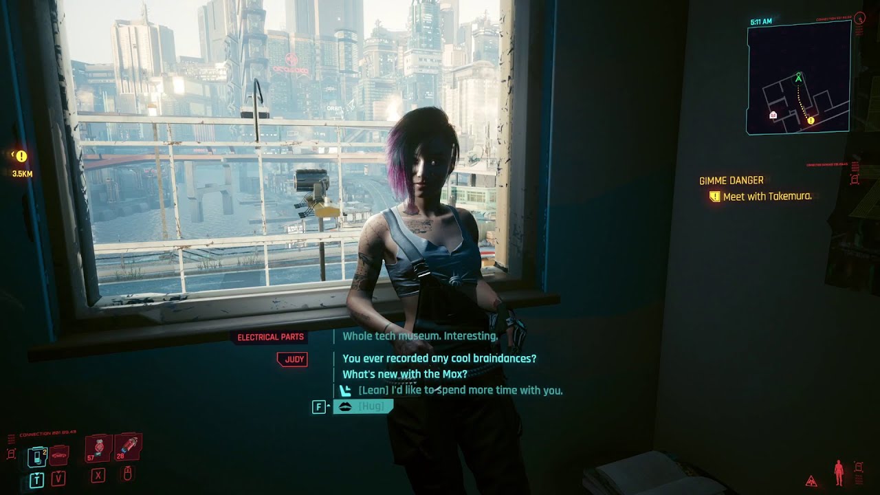 Многим игрокам в Cyberpunk 2077 не нравится роман с Джуди: после цепочки квестов талантливая брейндансерша зовет Ви жить к себе, однако весь ее домашний быт ограничивается стоянием у окна. Моддер deceptious решил исправить эту проблему, придумав для Джуди целый распорядок дня.