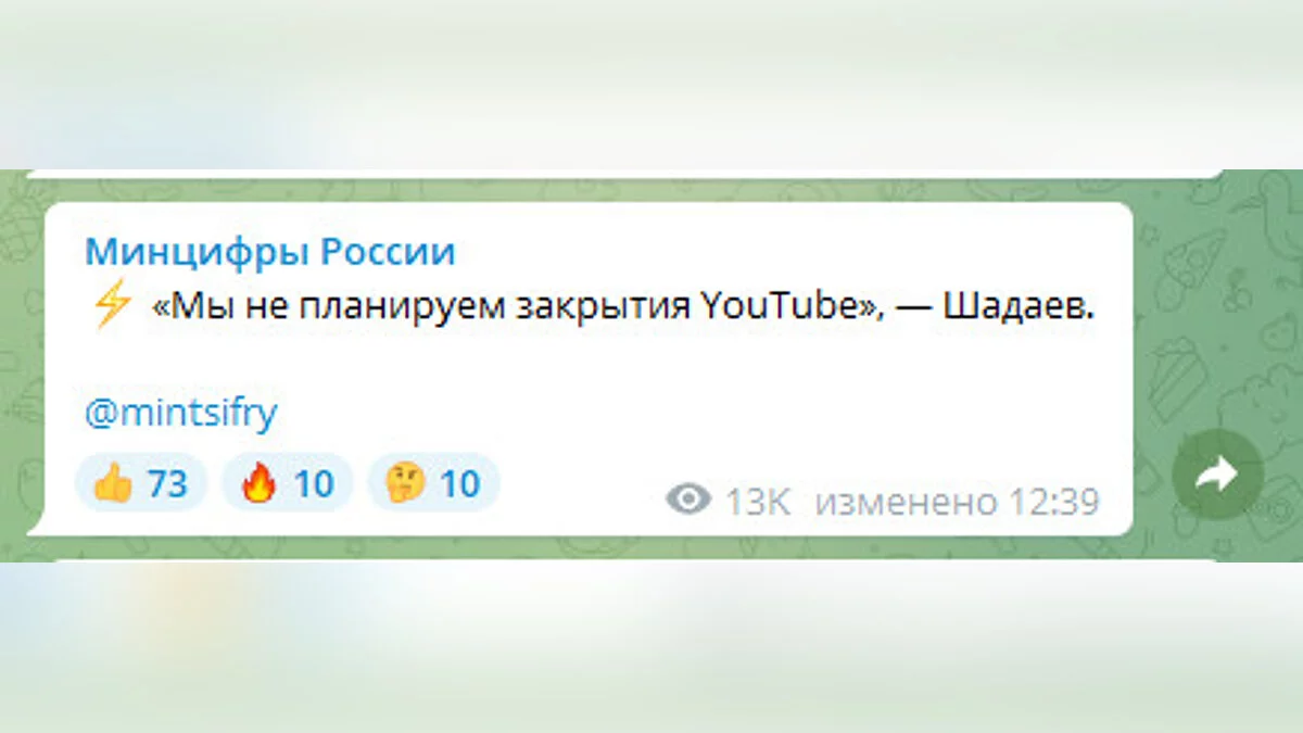 Видеохостинг YouTube продолжит работу в России, об этом заявил глава Минцифры РФ Максут Шадаев. Он коротко написал об этом в Telegram-канале ведомства.