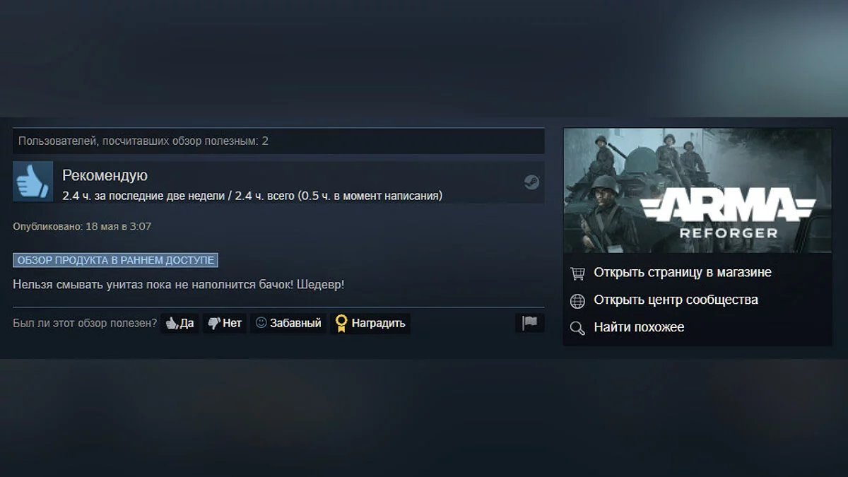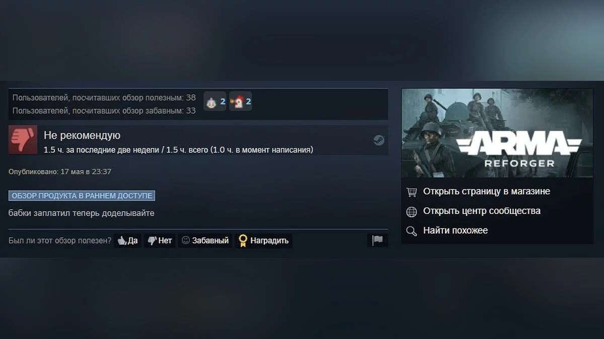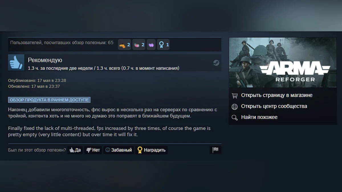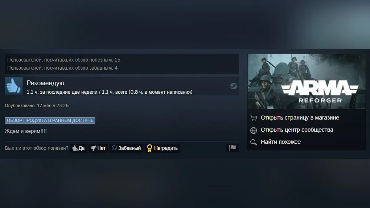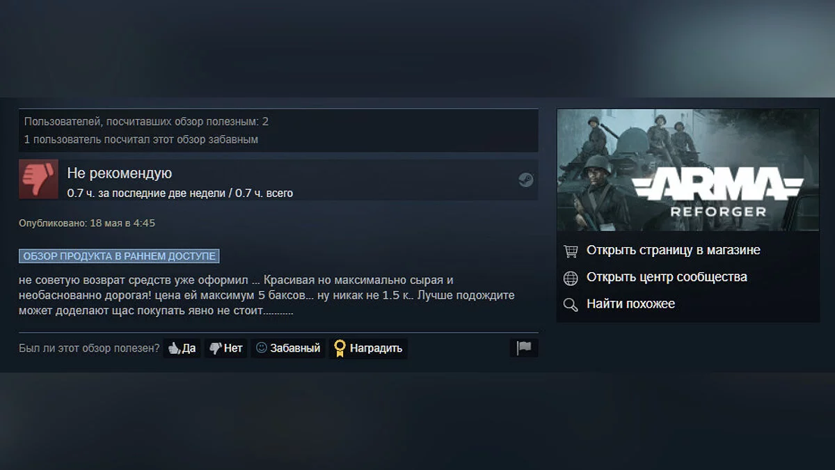 Игра пробудет в раннем доступе около года, поэтому сейчас ее качество оставляет желать лучшего. Пока у Arma Reforger 60% положительных отзывов в Steam.