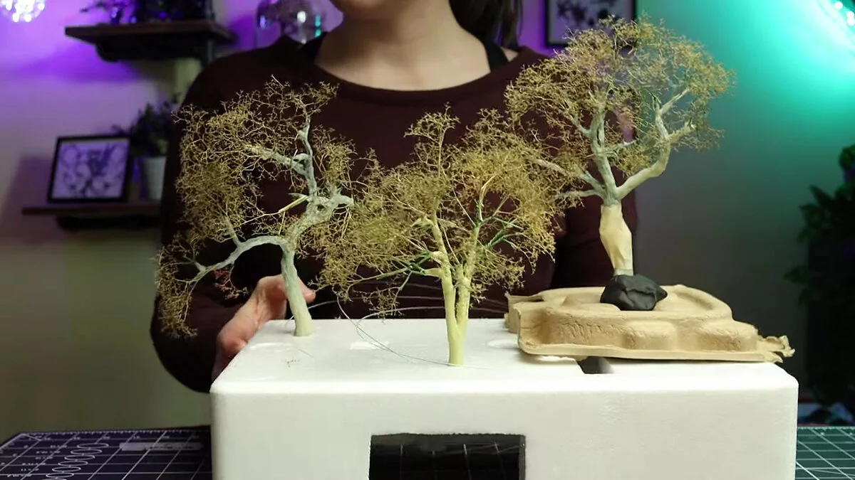 Другие элементы были созданы девушкой вручную. К примеру, Geordie Crafts продемонстрировала, как ей удалось создать реалистичные скалы, деревья и мелкие объекты.