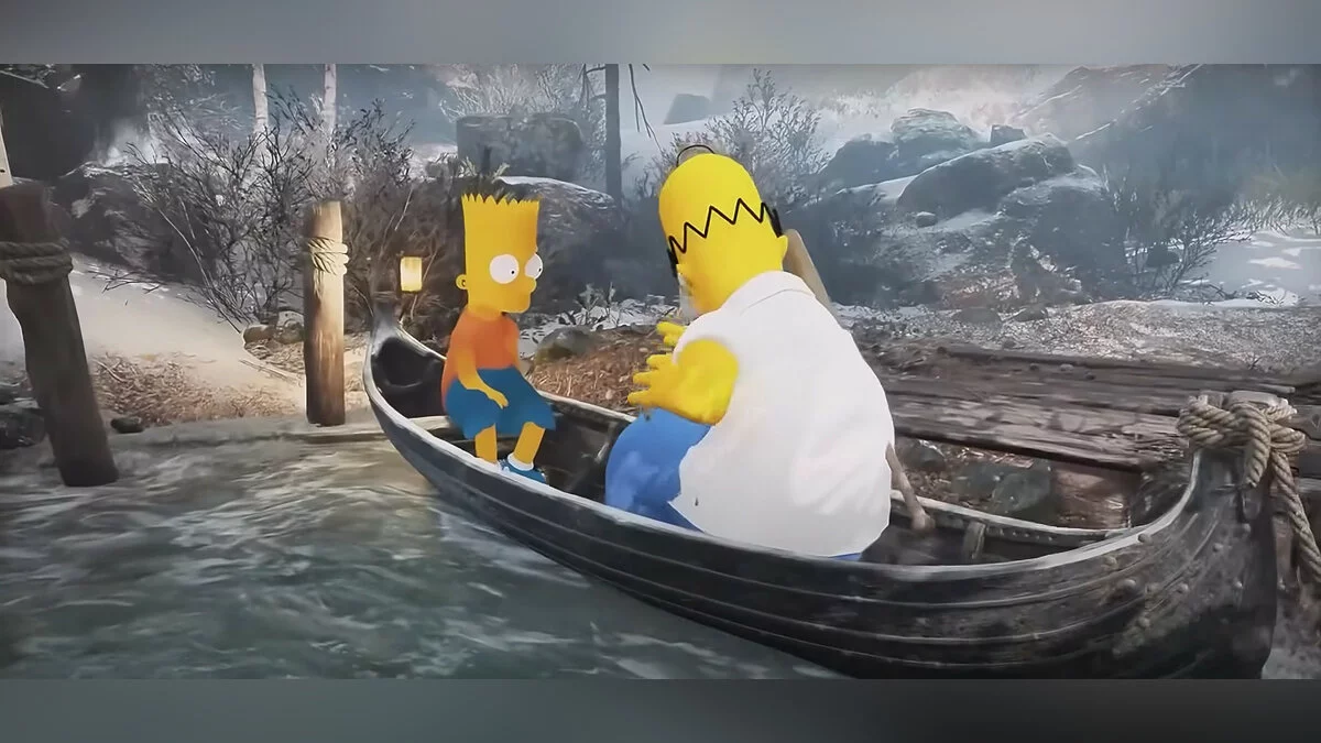 Кратоса автор заменил на Гомера, а вот вместо Атрея героя сопровождает Барт. В сцене, где персонаж должен сразиться с Бальдром, происходит битва с Недом Фландерсом.