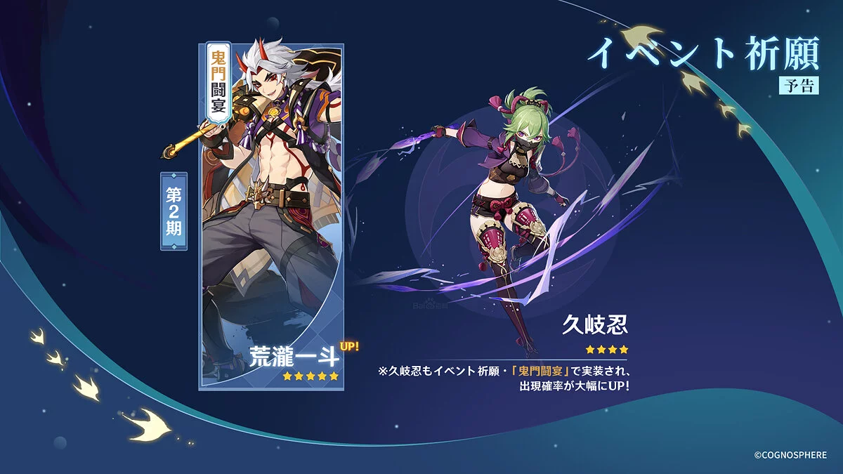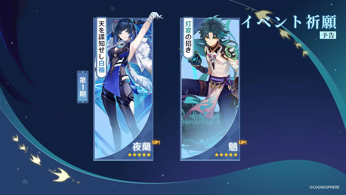 Патч введёт двух новых персонажей — 5-звёздочную гидро-лучницу Е Лань, которая войдёт в состав баннеров первой половины обновления, 4-звёздочную и электро-мечницу Куки Синобу — её добавят в баннер второй половины. Синобу получит задание-свидание, которое поближе познакомит игроков с героиней.
