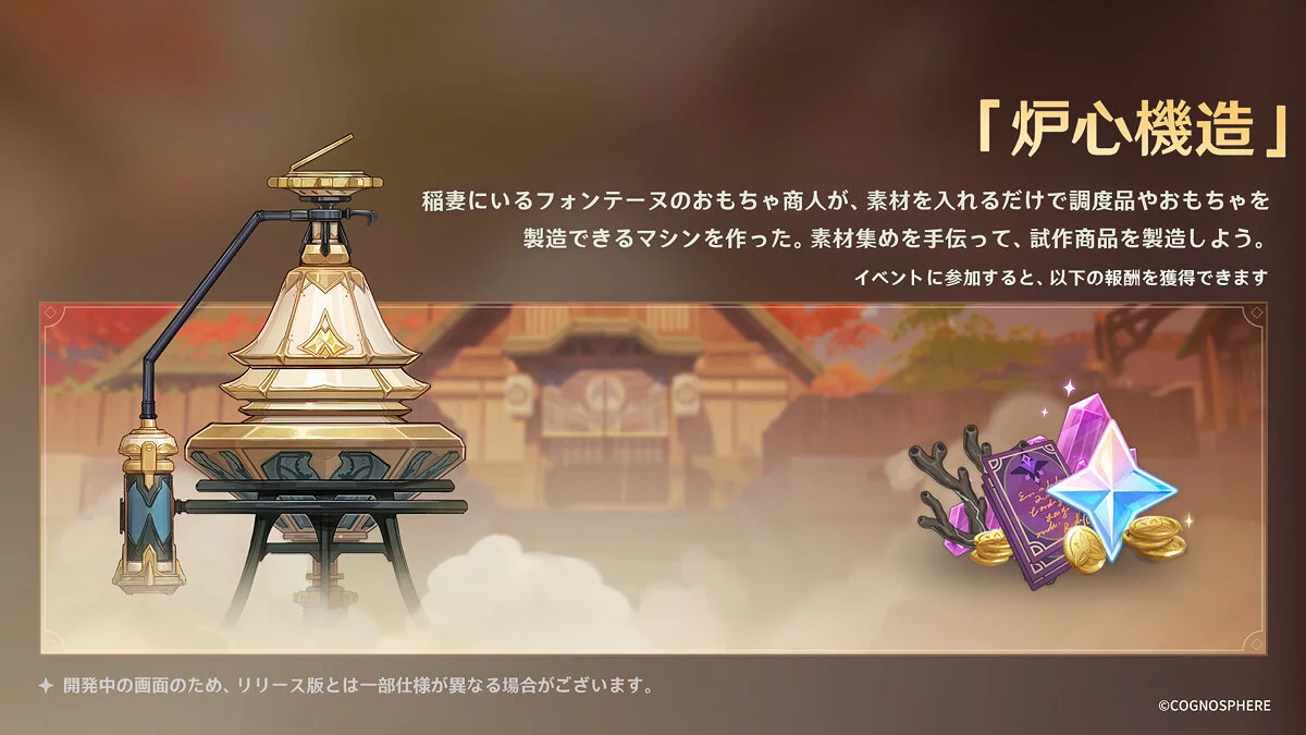 Появятся два новых оружия — 5-звёздочный лук Аква Симулякрум и 4-звёздочный лук Гаснущие сумерки, который подарят за прохождение ивента.