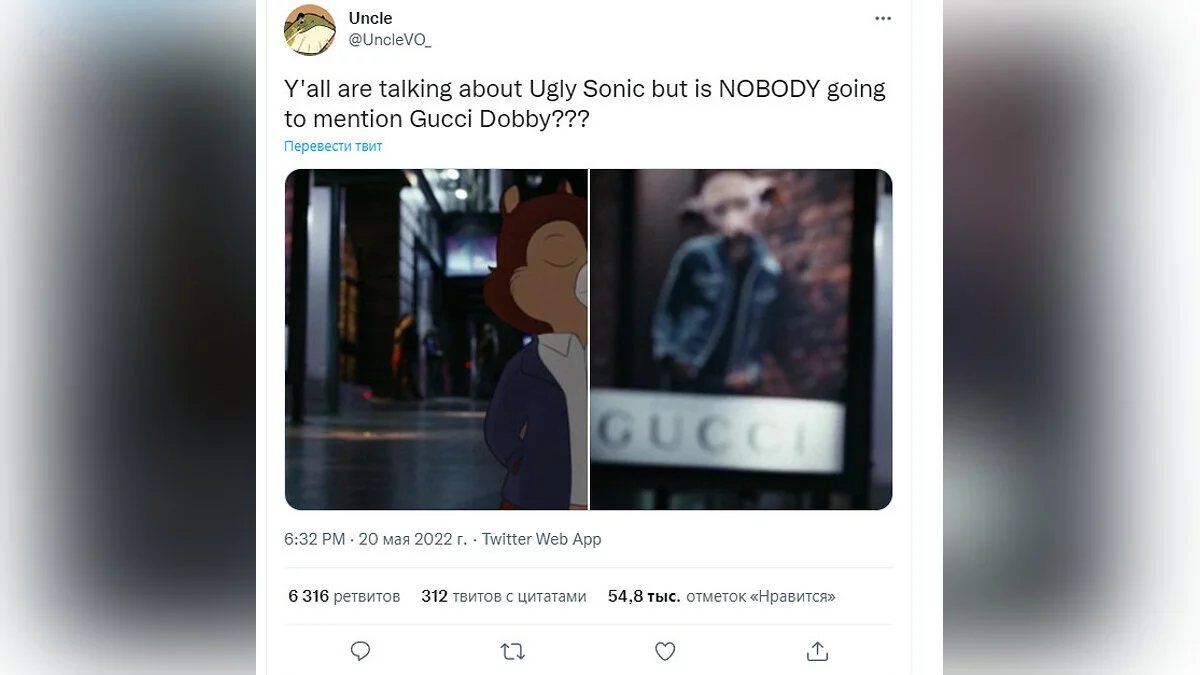 Пользователь сообщил, что на одном из постеров в фильме можно увидеть домового эльфа Добби, который щеголяет в одежде от Gucci. Забавно, что во вселенной «Гарри Поттера» эльф становился свободным, если хозяин дарил ему одежду. Является ли он свободным в этом мире или же, наоборот, попал в «рабство» бренда, неизвестно.