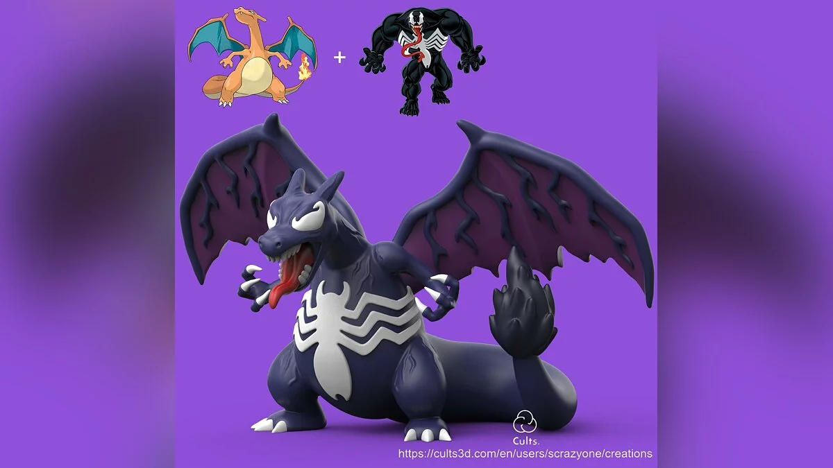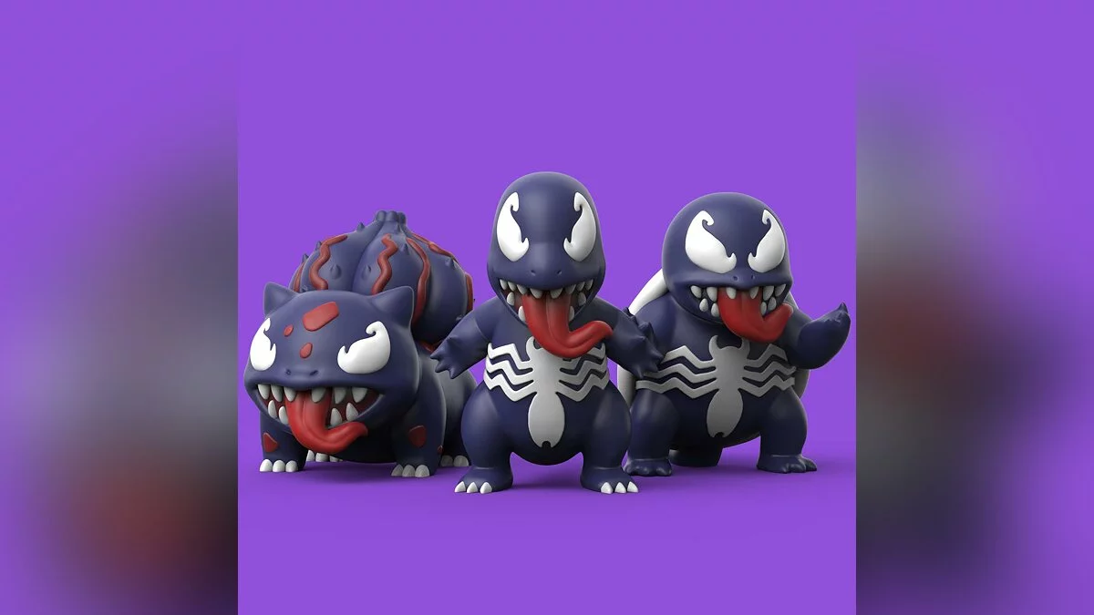 Примечательно, что это не первый раз, когда scrazyone1 объединяет популярных покемонов с Веномом. Ниже можете увидеть другие работы автора: