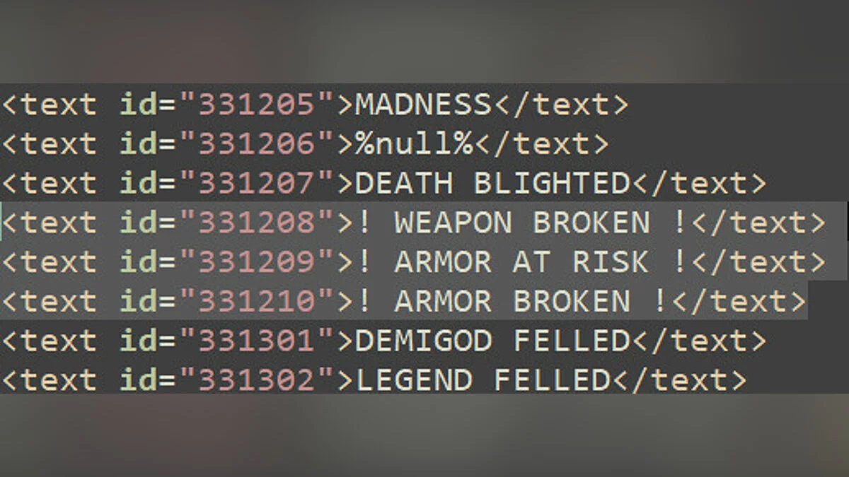 Как вы можете помнить, в «Душах» у оружия и брони был запас прочности, поэтому время от времени ее приходилось чинить у кузнеца. Судя по строчкам с упоминанием сломанной экипировки, эта же система могла появиться в Elden Ring. «Просматриваю текстовые файлы и на секунду пугаюсь. Я рад, что ее больше нет», — написал датамайнер.