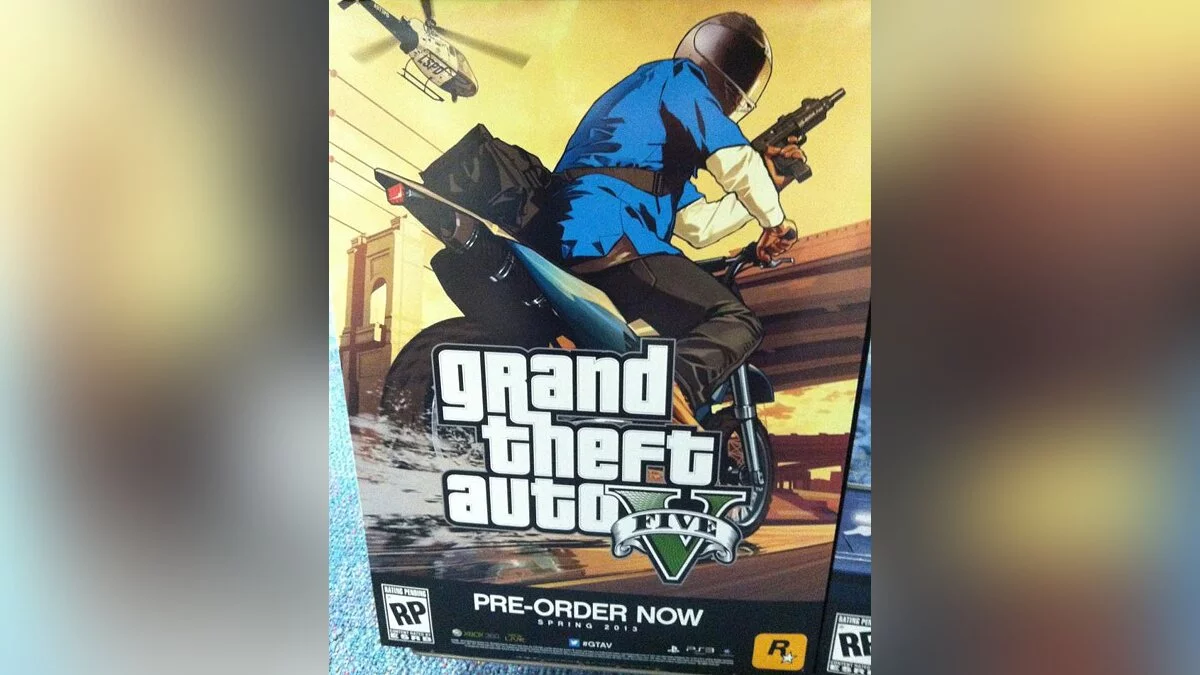 В зарубежной торговой сети Gamestop засветилось новое изображение Grand Theft Auto 5. Некоторые фанаты не сумели пройти спокойно мимо него и сфотографировали на камеру. Далее дело оставалось за малым — загрузить этот арт в сеть.
