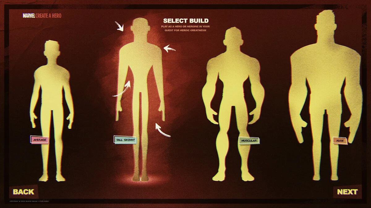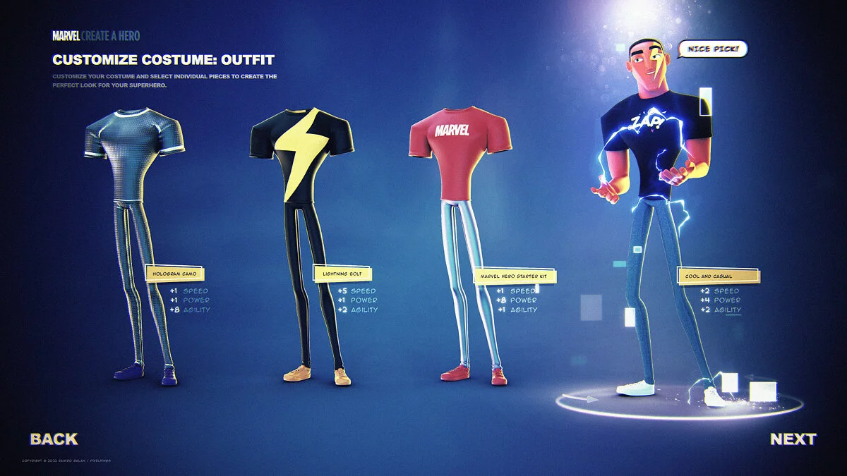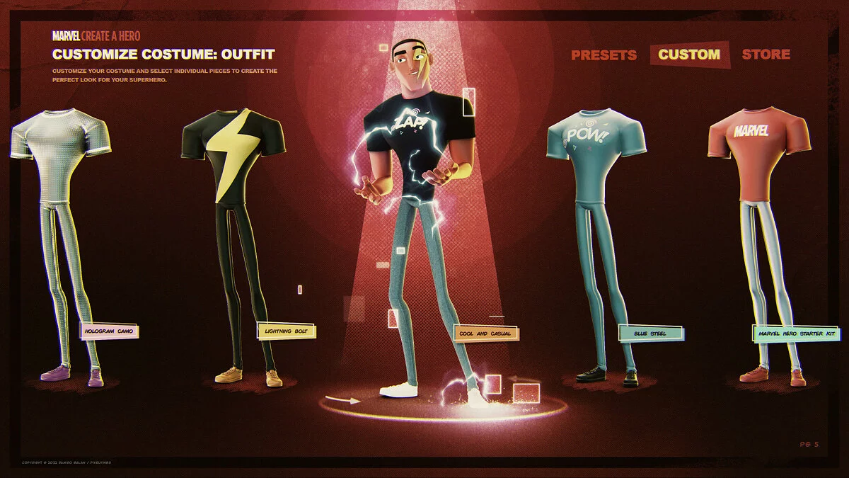 На изображениях можно увидеть меню настройки персонажа. В начале игры геймеры должны были выбрать пол, имя, лицо, телосложение, костюм и суперспособности своего героя, а также вступить в одну из четырёх фракций (Люди Икс, Фантастическая Четверка, Щ.И.Т. и Мстители).