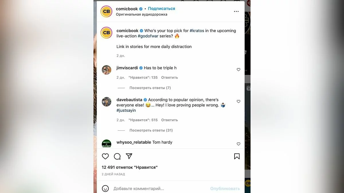Но в процессе обсуждения появился Дэйв Батиста (David Bautista), который намекнул, что не прочь попробовать себя в роли Бога войны.