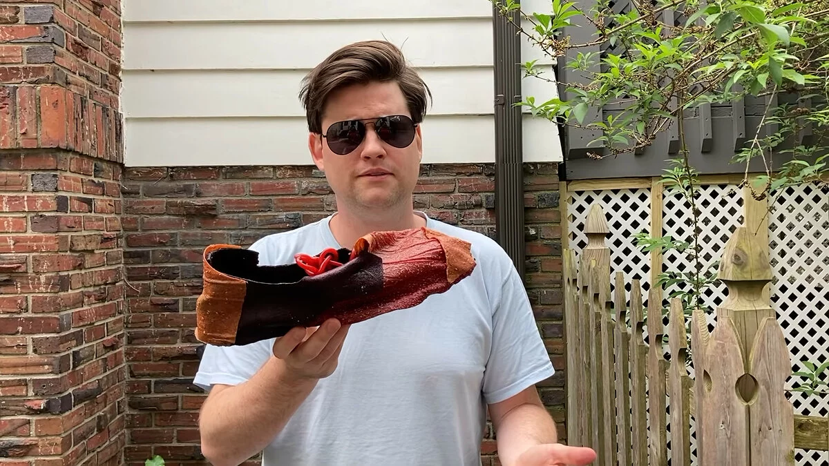 Процесс поедания ботинка Патчес запечатлел в 20-минутном ролике. За 12 лет злополучный твит успел превратиться в мем, а журналист — жениться и обзавестись двумя детьми. Супруга запретила ему есть настоящую обувь, поэтому Патчесу пришлось сделать его съедобную версию. В ход пошли фруктовое пюре, специальный клей и схемы для вырезания деталей.