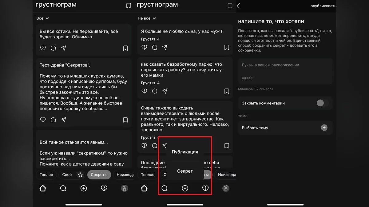 В социальной сети «Грустнограм» запустили новую функцию под названием «Секреты». Она позволит публиковать анонимные посты и «делиться чем угодно». Комментарии к таким записям тоже буду анонимными, а в качестве аватаров автоматически будут выбираться изображения известных поэтов и писателей.