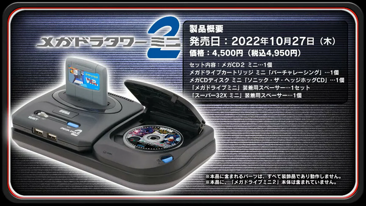 Этой осенью SEGA выпустит миниатюрную ретро-консоль Mega Drive Mini 2, но пока речь идёт только о Японии. Новинка получит в общей сложности 50 игр с оригинальной Mega Drive, которые не попали в подборку для первой консоли, игры с Sega Mega CD, портированные версии с аркадных автоматов, а также проекты, которые ранее не выпускали.