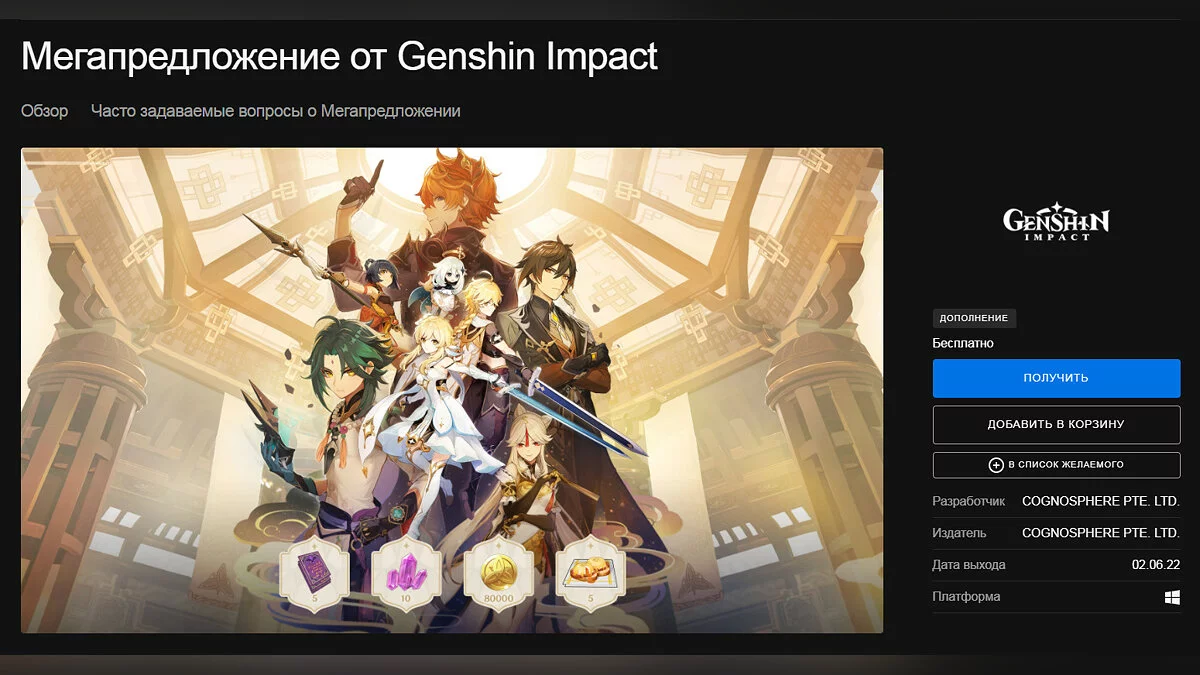 В рамках мегараспродажи компания Epic Games запустила в EGS бесплатную разрачу набора Mega Deal Bundle для ролевого экшена Genshin Impact.